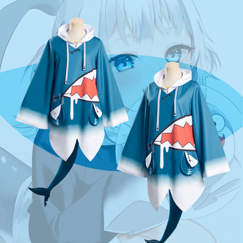 Gawr Gura Cosplay Costume Hololive English Shark Suit Wig And Hoodies Hat Tail Woman Kawaii Costumes Sweetshirt Brand Bekung Slim Baju Merdeka Budak